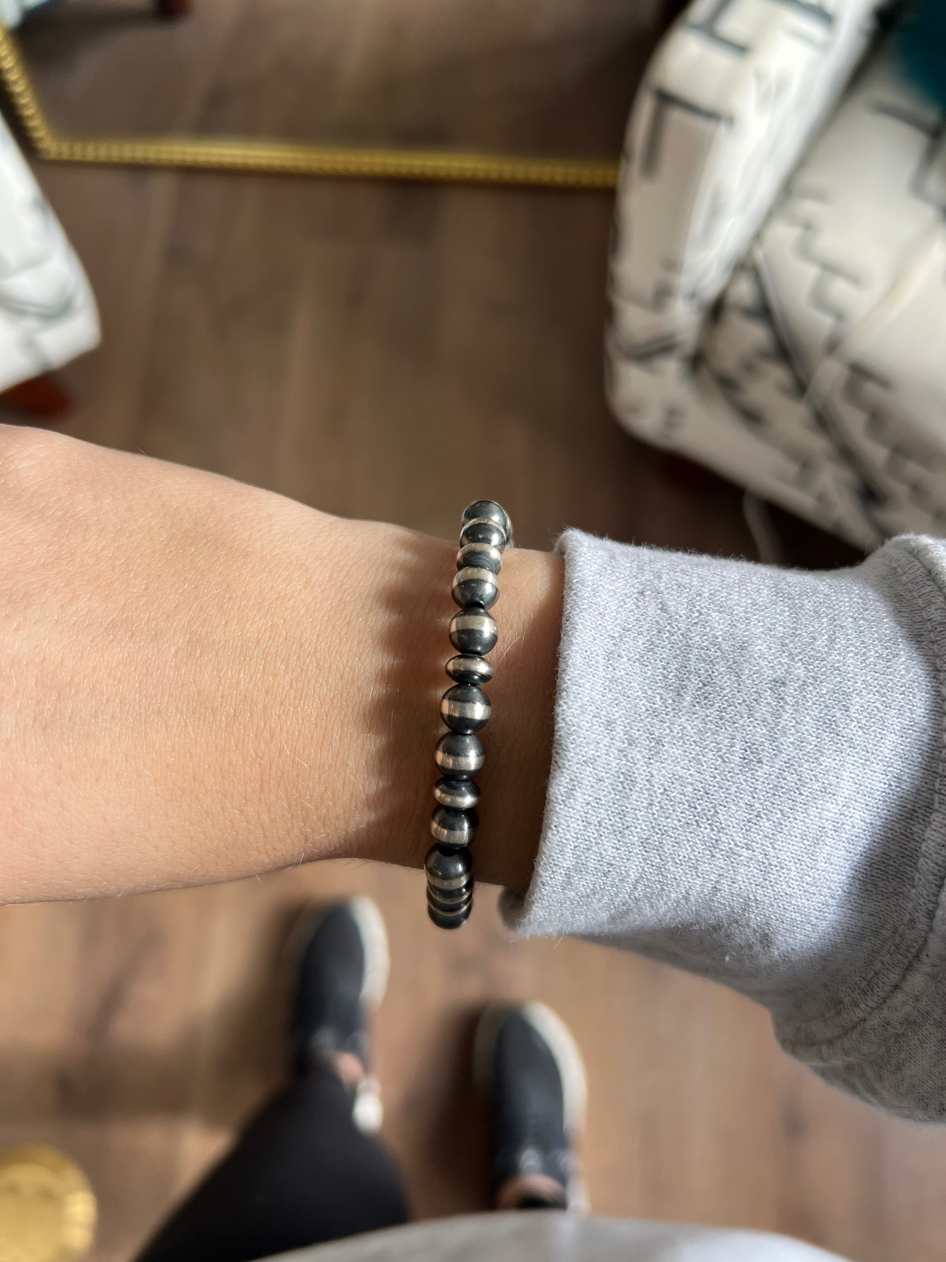 Navajo Pearl Round/Saucer Stretch Bracelet - 7mm -delete