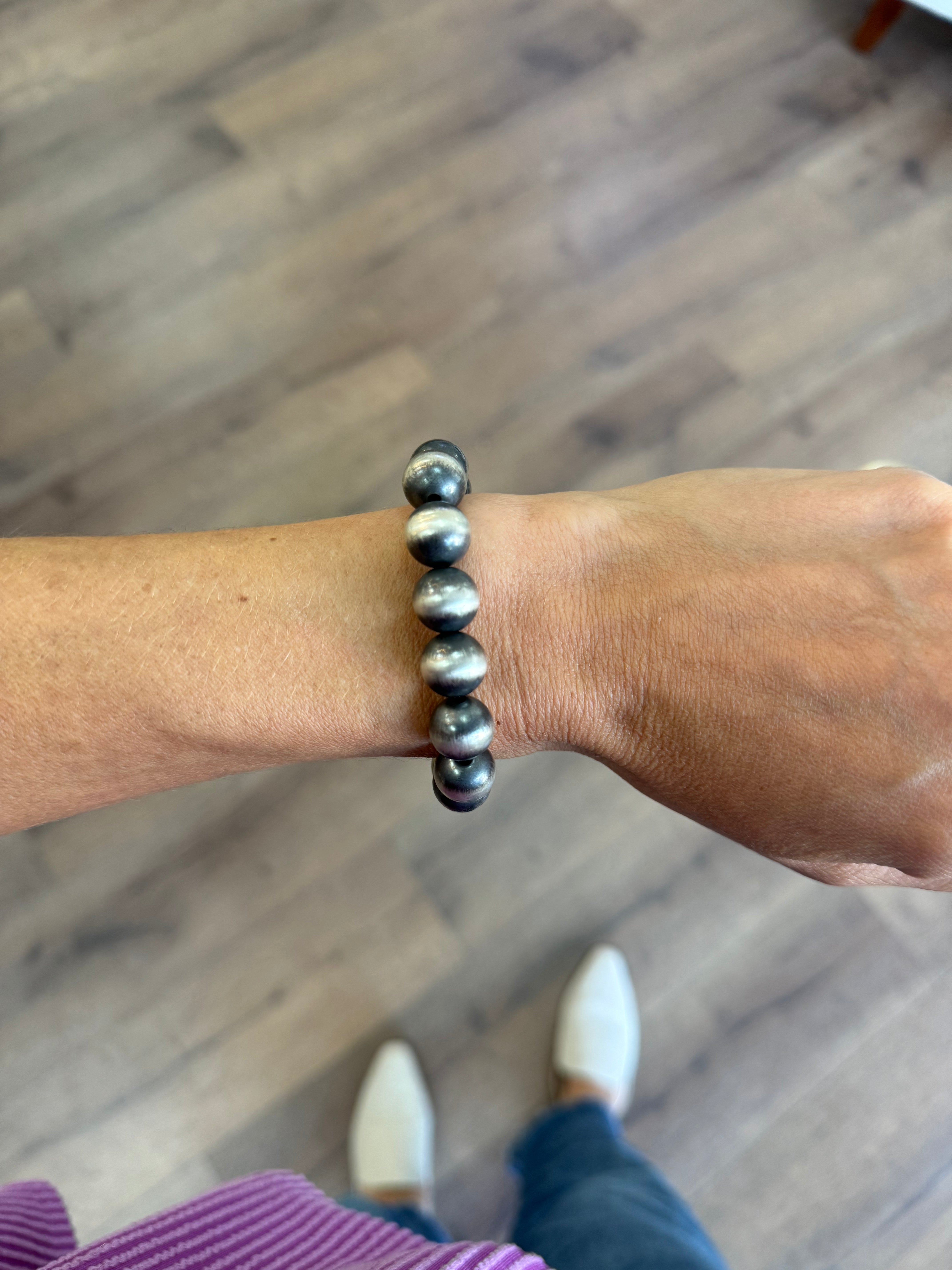 Since the bracelet is made from stretchy material, it will expand to fit your wrist when worn. However, the listed inside circumference is not for the bracelet in its fully stretched state—it’s the relaxed measurement. Stretch bracelets are designed to stretch, but they should not be worn stretched out at all times.