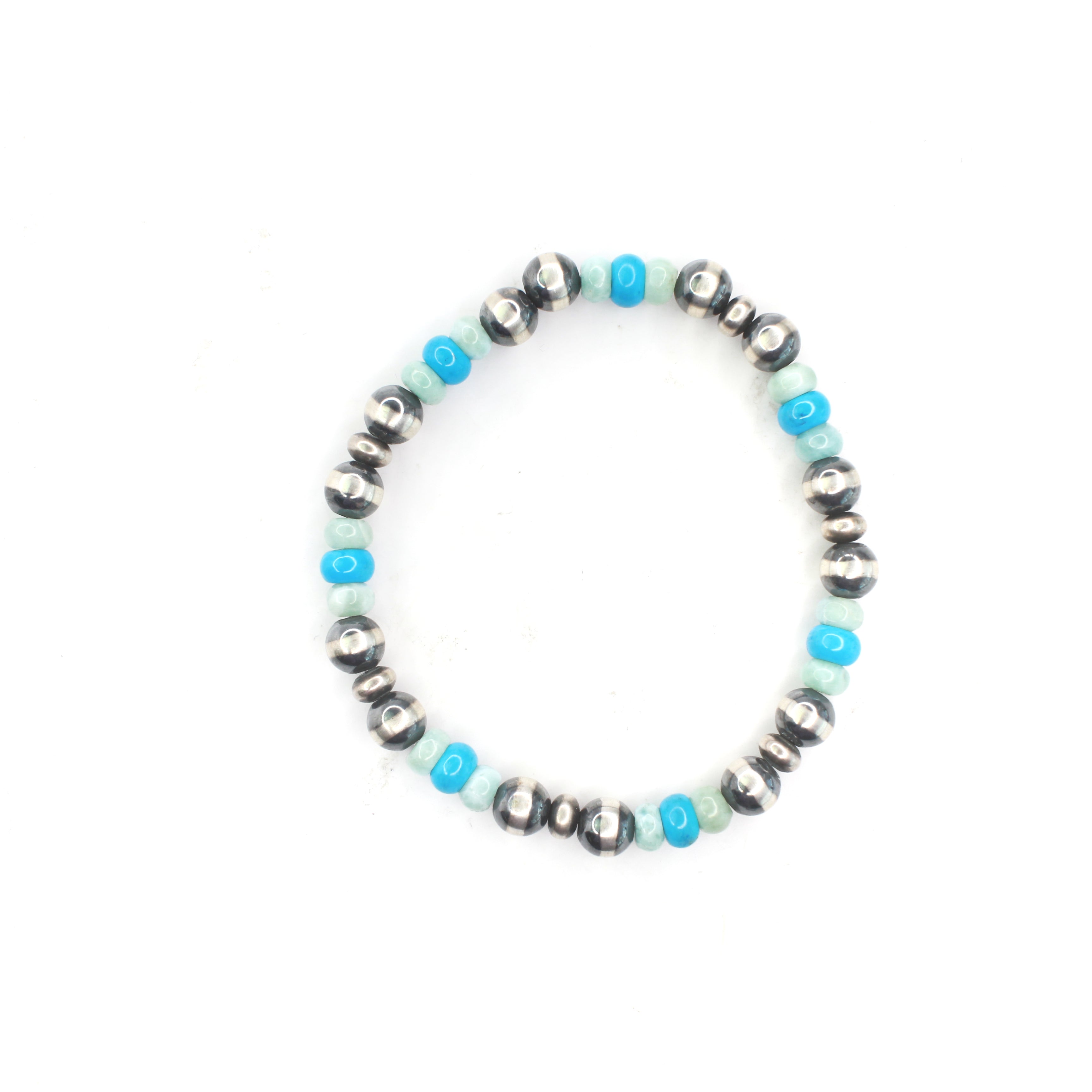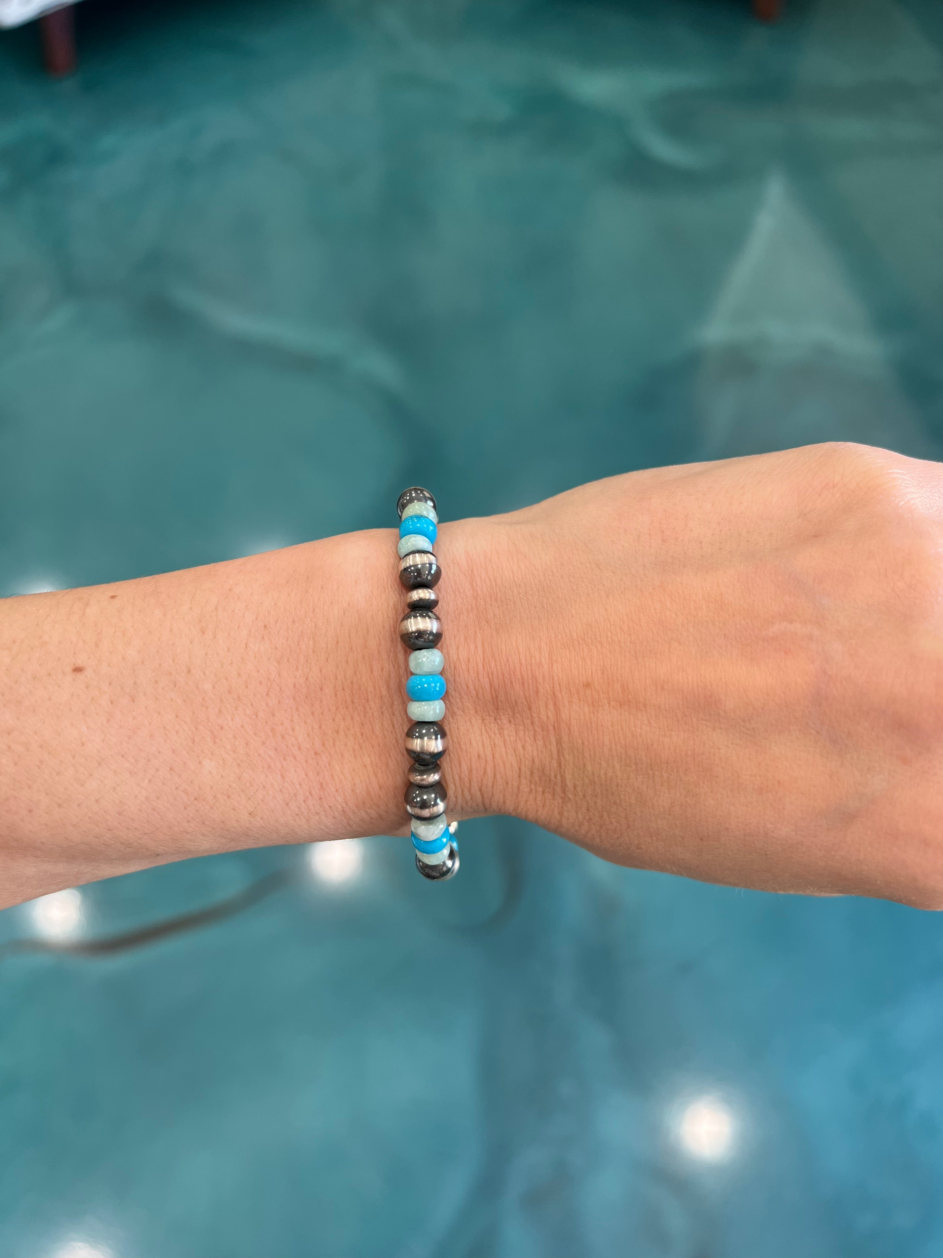 Navajo Pearl Stretch Bracelet - Larimar & Turquoise