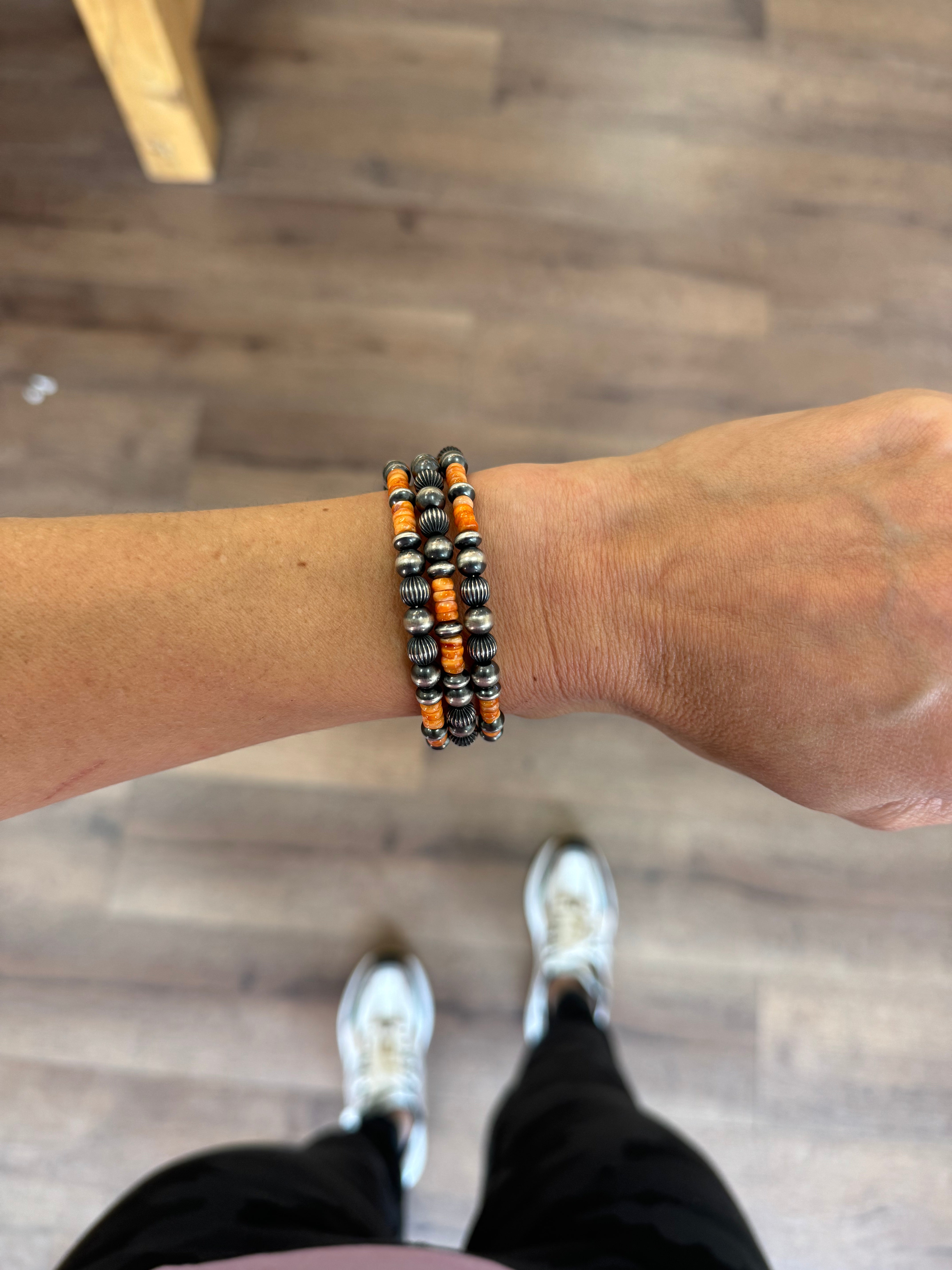4mm - 7mm Memory Wire Navajo Pearl Bracelet - Orange Spiny