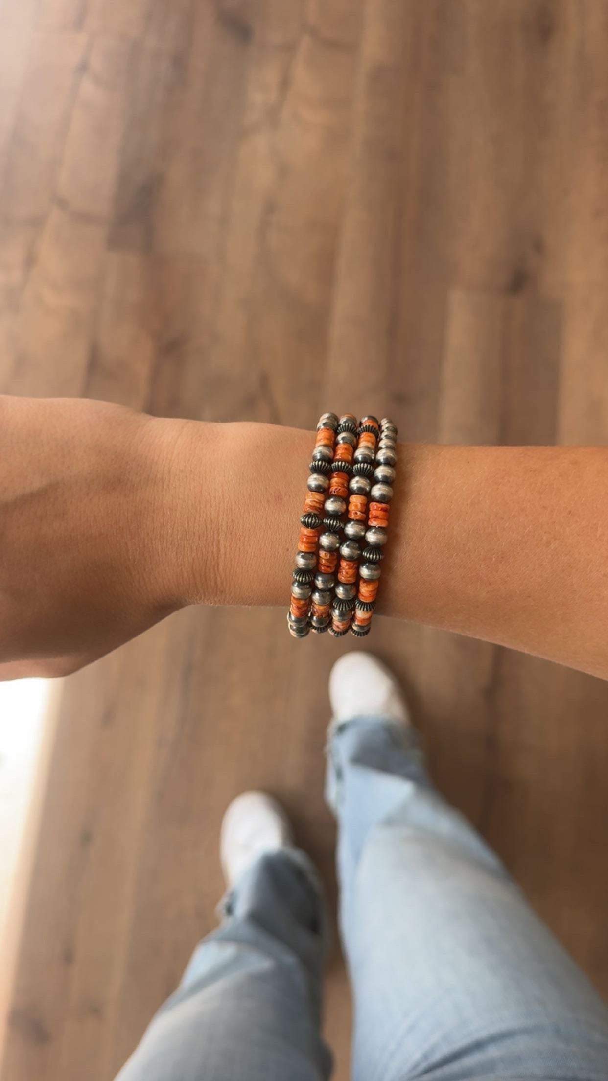 4mm - 6mm Memory Wire Navajo Pearl Bracelet - Orange Spiny