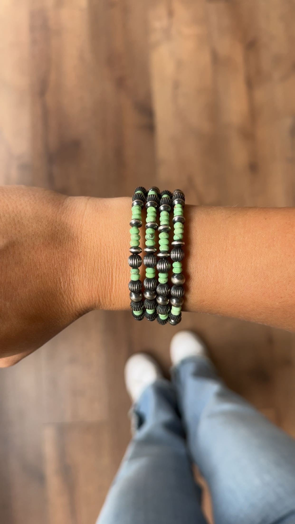 4mm - 6mm Memory Wire Navajo Pearl Bracelet - Green Gaspite