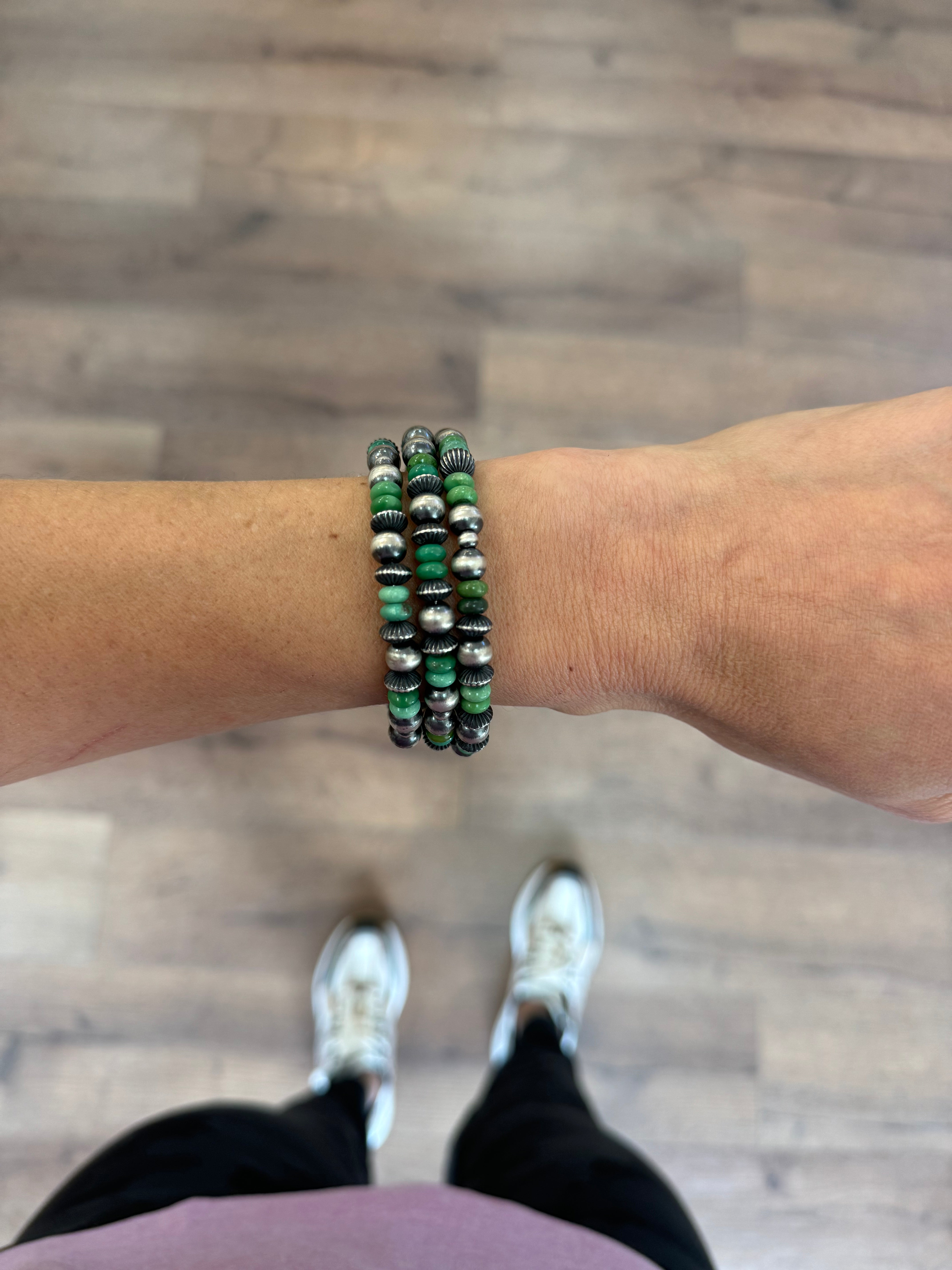 4mm - 6mm Memory Wire Navajo Pearl Bracelet - Green Turquoise