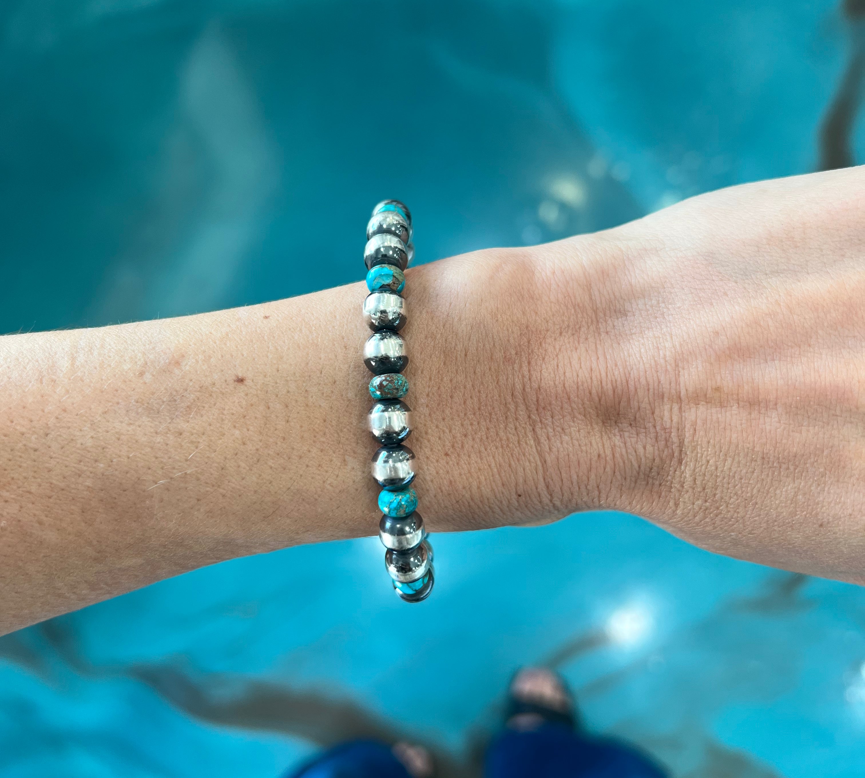 Multi Size Navajo Pearl Stretch Bracelet- Green Turquoise