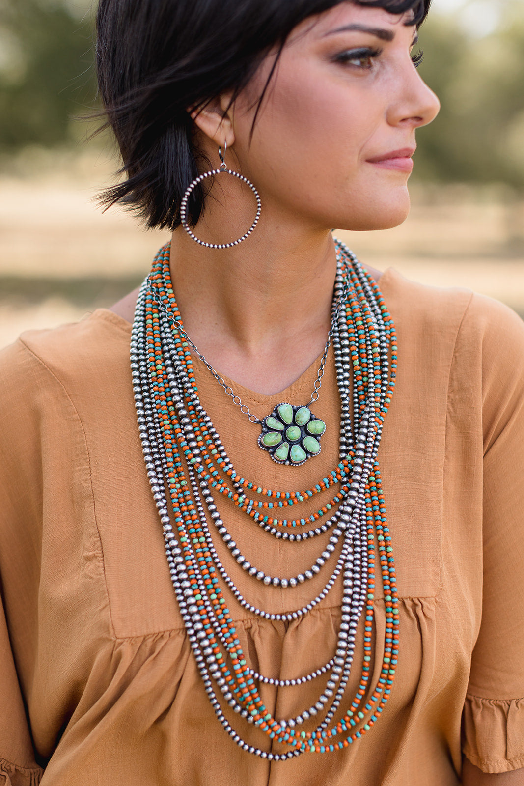 This product utilizes machine-made beads sourced from here in USA. While the components are machine-based, Native American artisans remain actively involved in the design and assembly of the jewelry. For more information Click Here