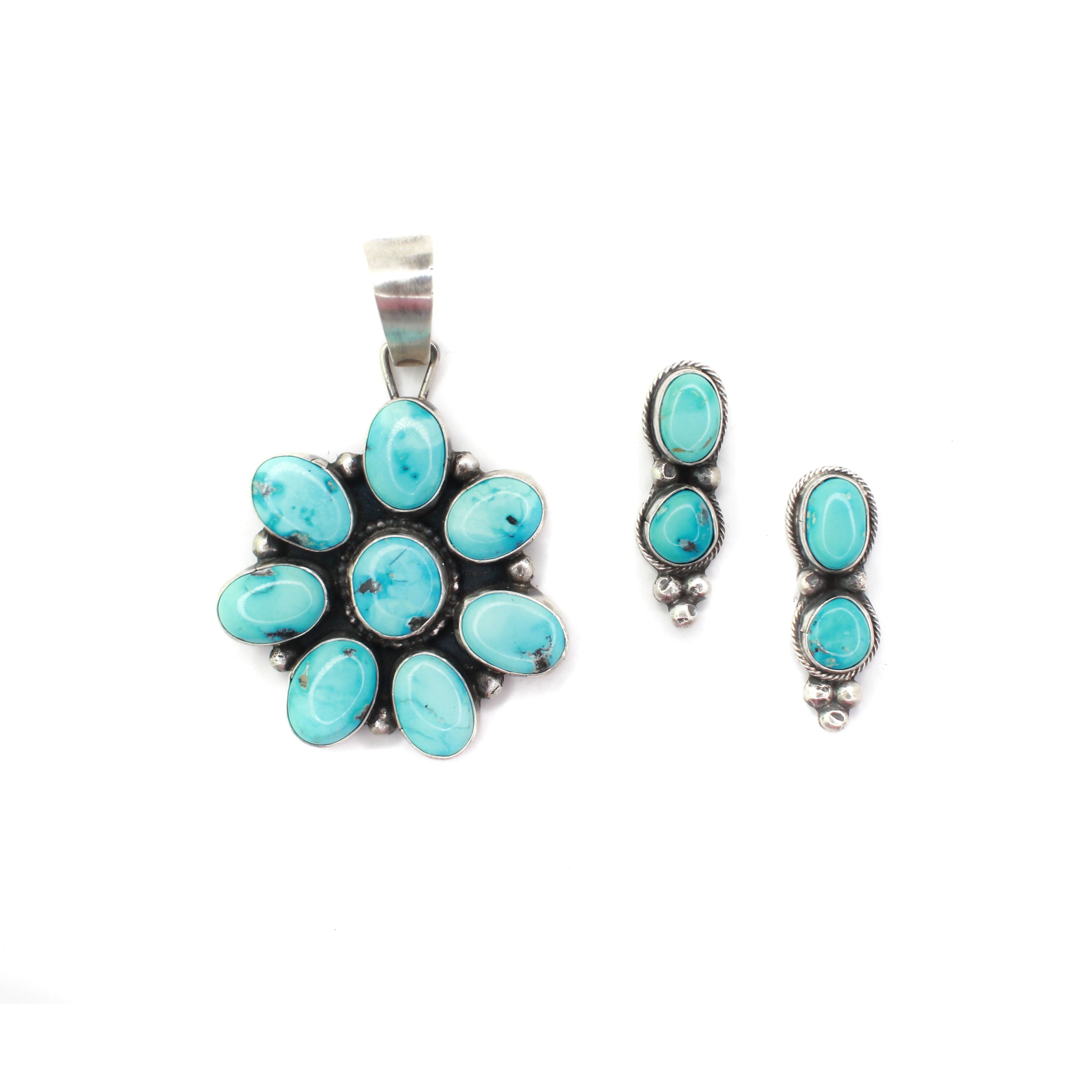 2025 BLACK FRIDAY: Cluster Turquoise Pendant & Earring Set