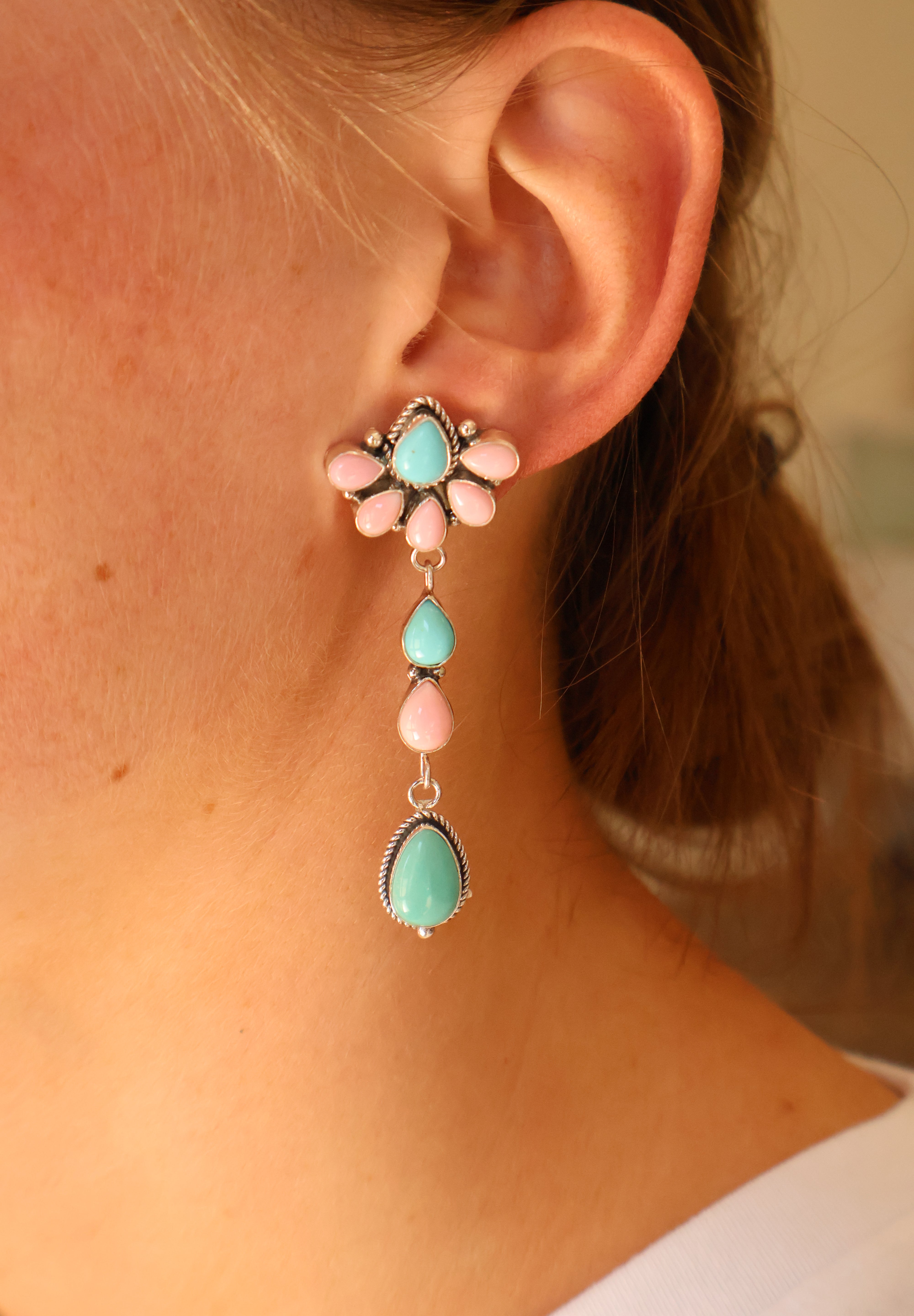 - Genuine Pink Conch and Turquoise