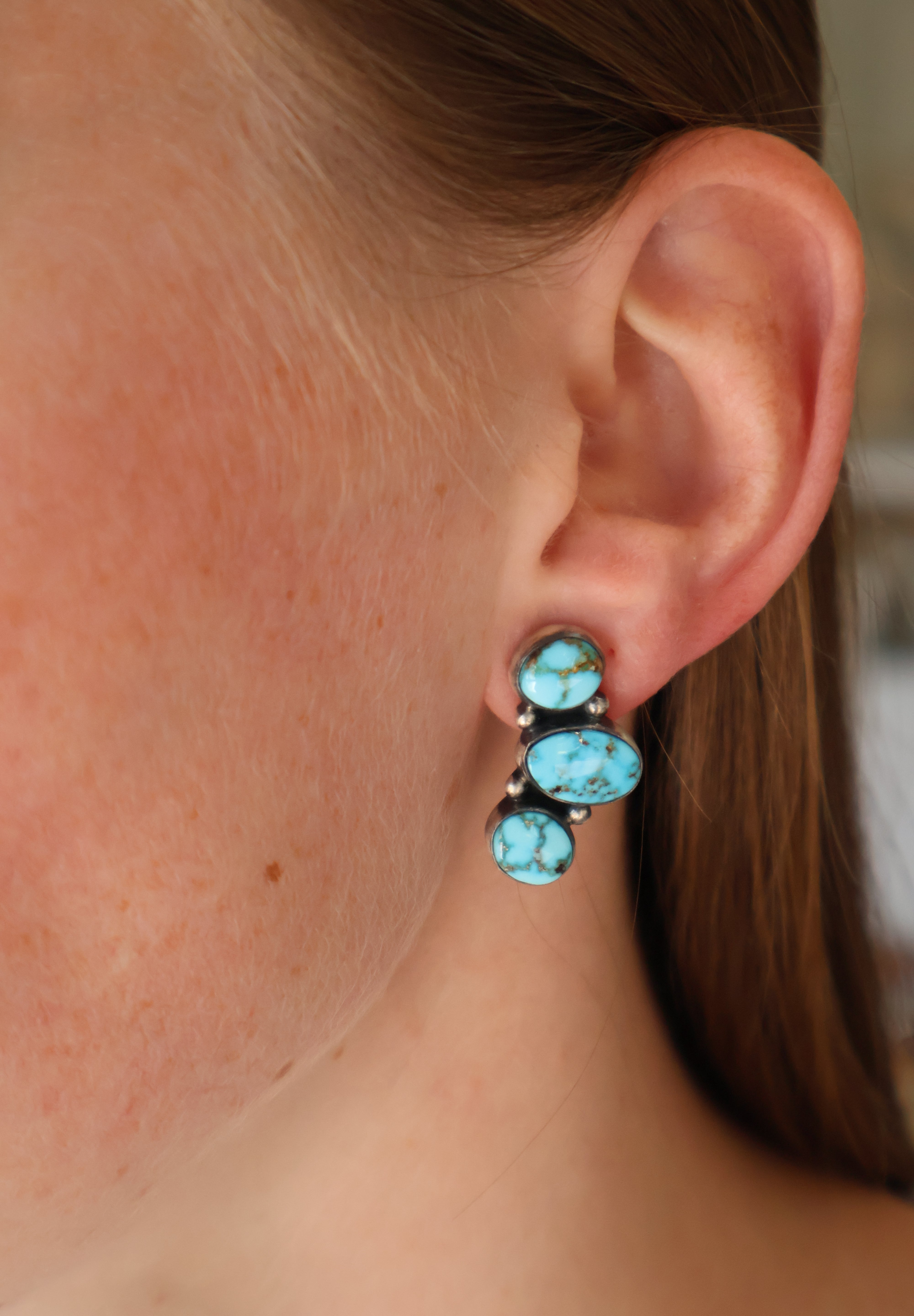 Loretta has a special fondness for turquoise, as it reminds her of her grandmother. Her jewelry style combines traditional techniques with a contemporary twist. She explains that her cluster-style pieces symbolize family, with the center representing the grandparents and the surrounding stones representing their children and grandchildren.