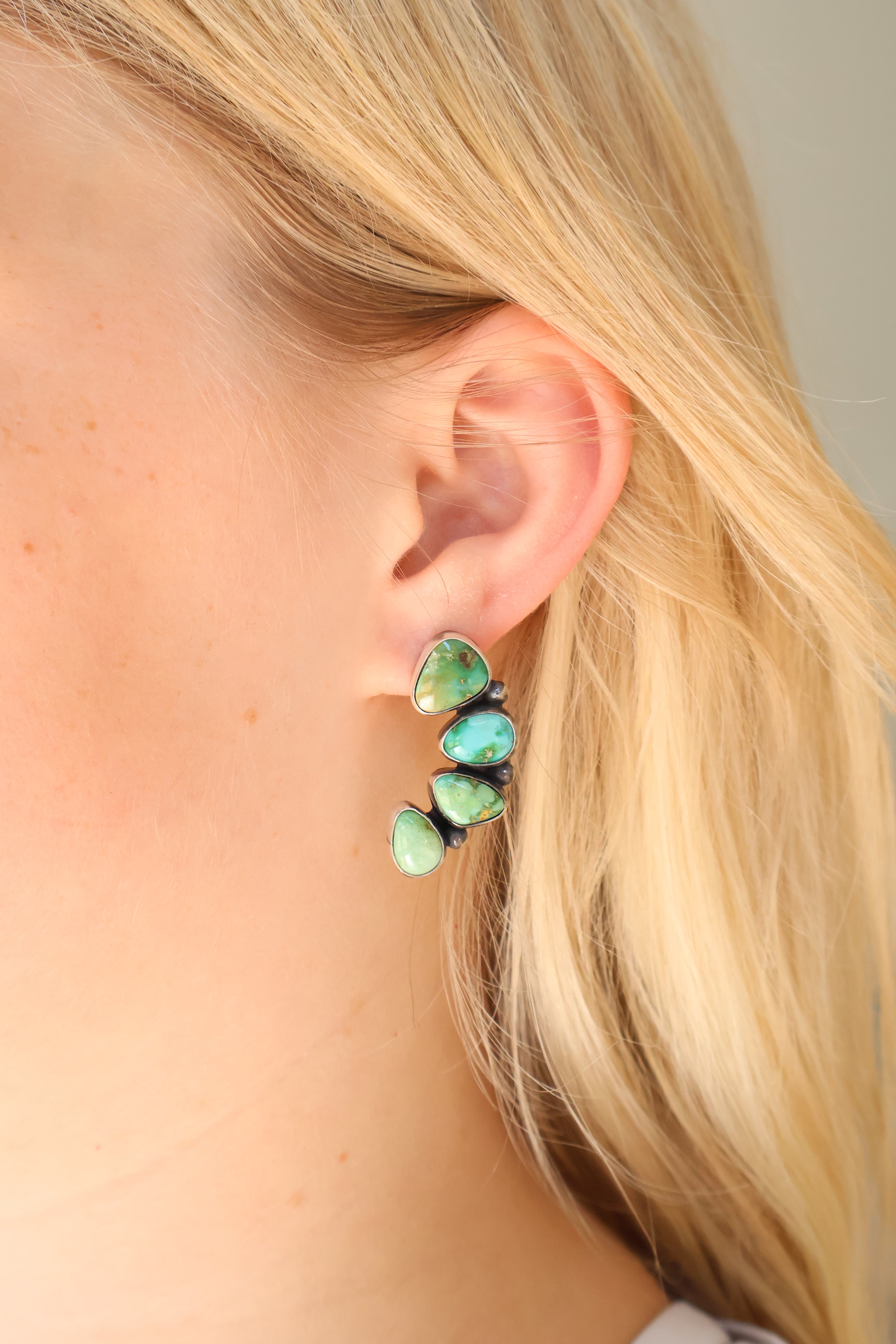 Sonoran turquoise, mined from the Campitos Mountain near Cananea, Sonora, Mexico. This region produces several distinctive types, including Sonoran Gold, known for its vibrant colors like aqua blue, lime, and two-tone blue and green with a golden-brown matrix; Sonoran Rose, a natural bright blue turquoise; and Sonoran Blue, valued for its hardness, shiny pyrite flakes, and black oxide veins.