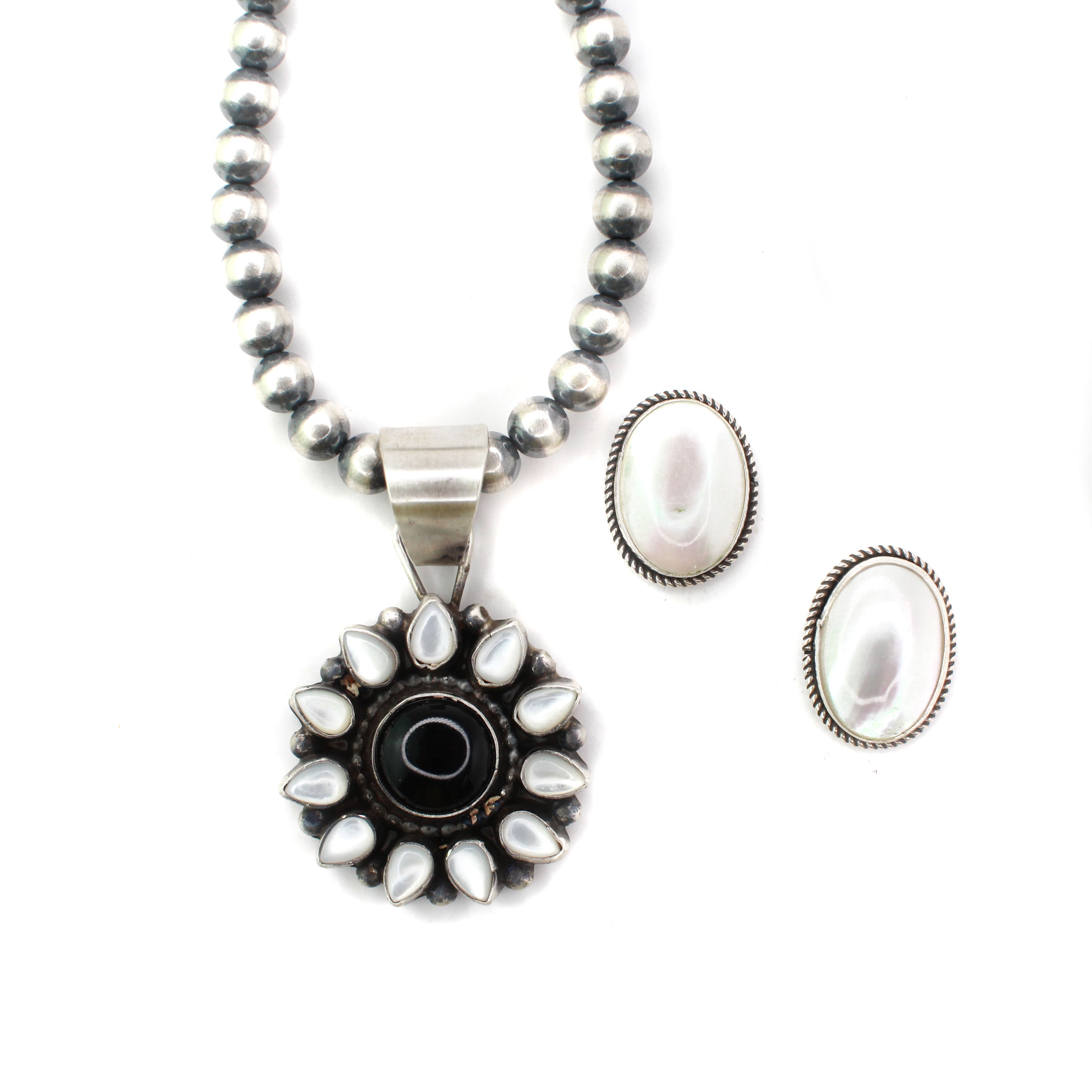 Includes: Earrings, Navajo Pearl Necklace, Pendant Set