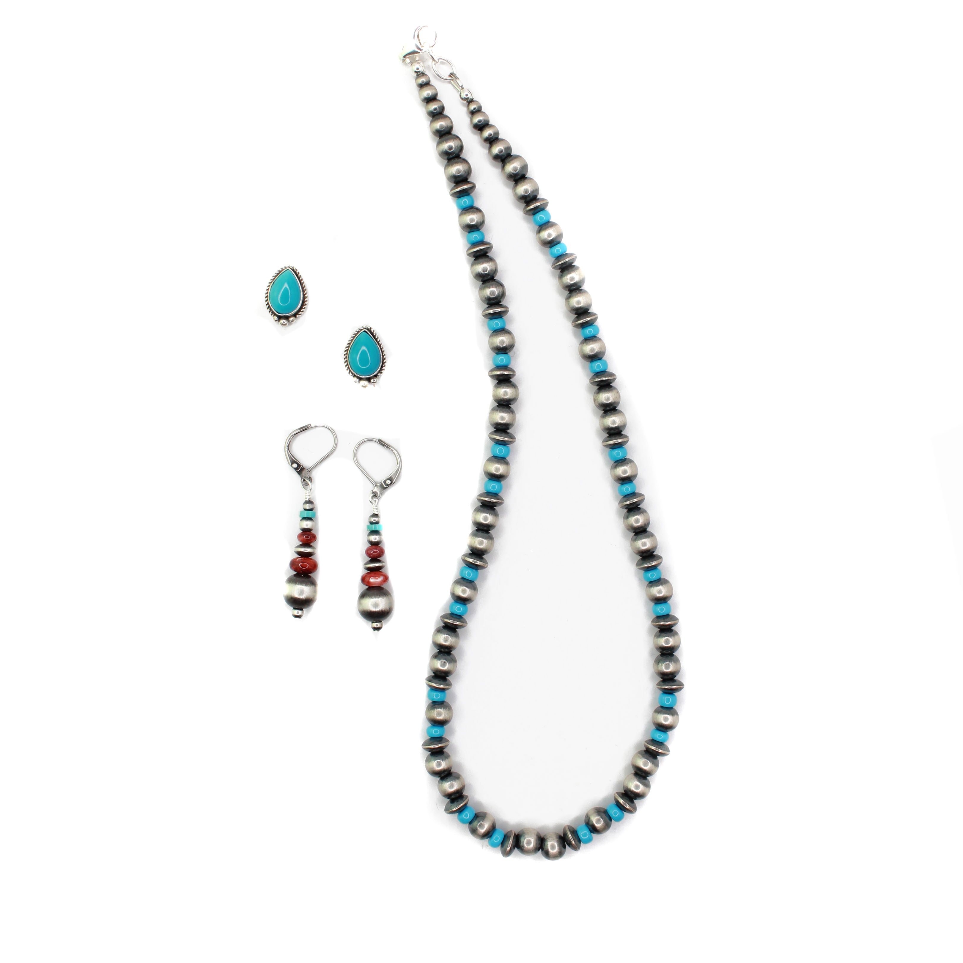 Includes: Machine Made Beads, Turquoise Stud Earrings, Navajo Pearl Earrings