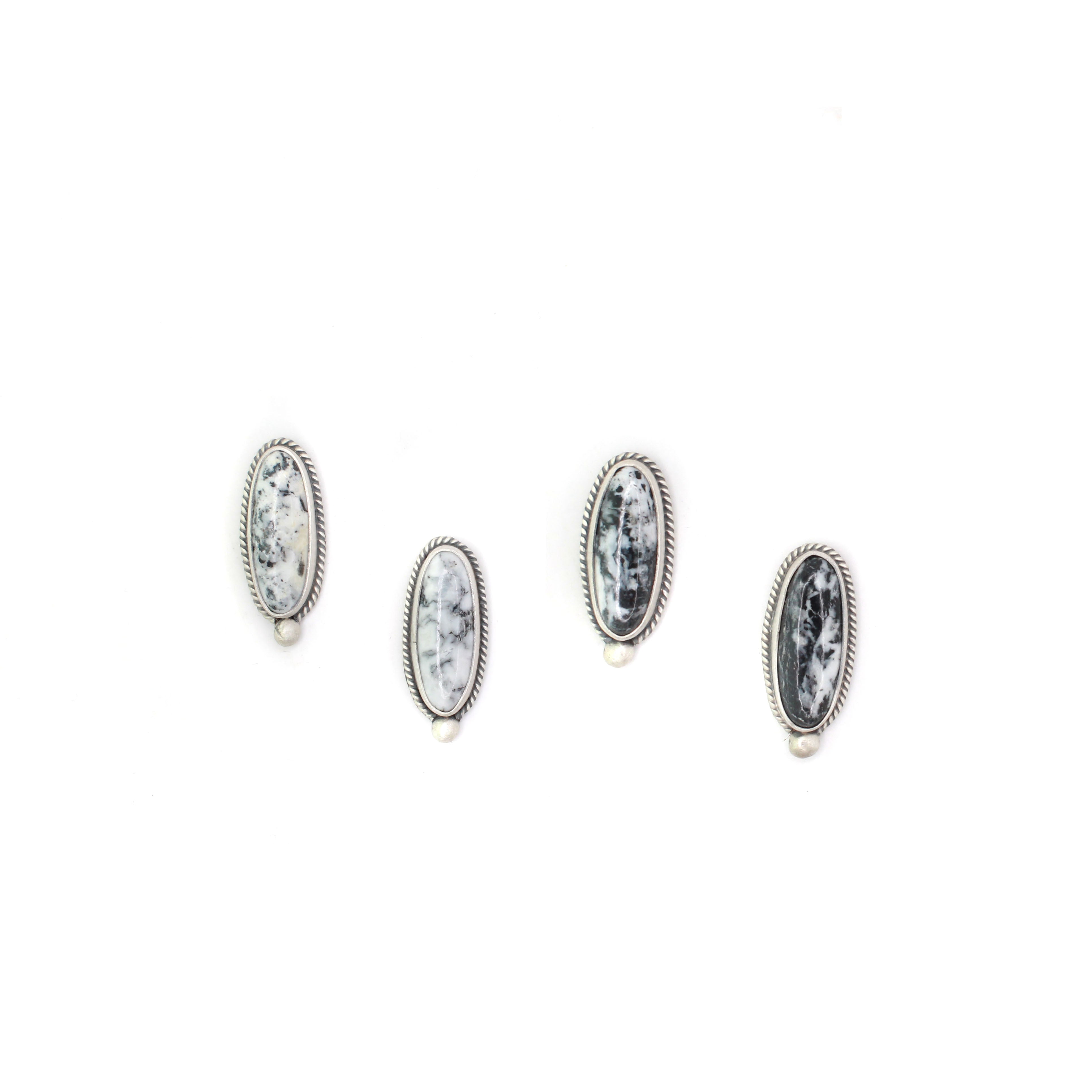 White Buffalo is in fact NOT turquoise. Although White Buffalo is often sold as turquoise, it's classification is actually magnesite and alumite. Its unique coloring comes from the presence of Calcite mineral. The only mine known to be home to White Buffalo is The Dry Creek Mine in Tonopah, NV. It was first discovered by the Otteson family in 1993. The name derives from the Native American belief that white buffaloes are pure and rare like the white buffalo stone. The white stone is surrounded by black and brown flint-like chert which creates beautiful patterns, and sometimes in rare pieces, a spider-web matrix. The stone appears in veins, is as hard as turquoise (Mohs hardness scale of 5.5 to 7.5) and cuts and polishes like turquoise.