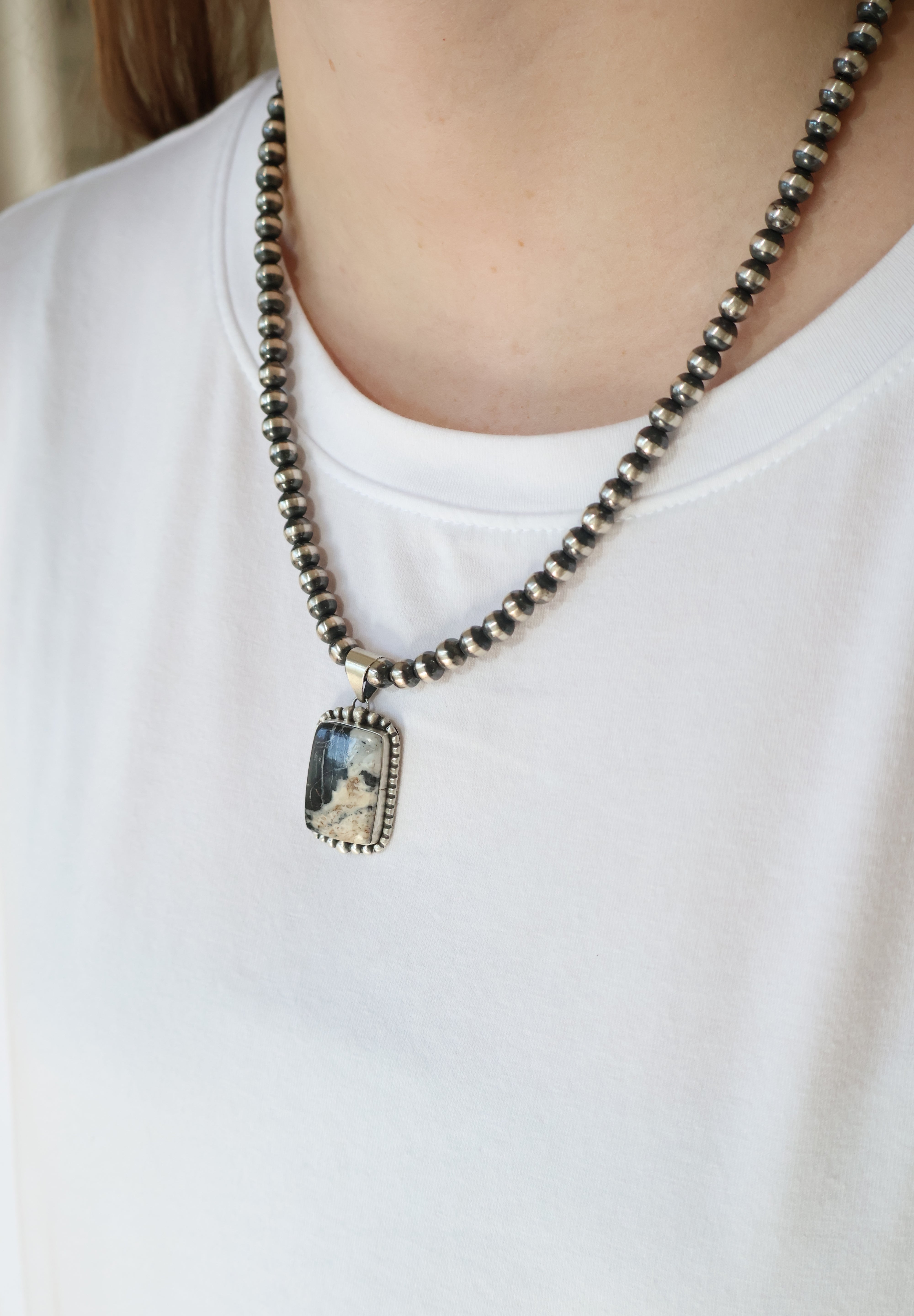 Pictured on 6mm, 20" Navajo Pearls Not Included