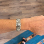 Elgin Tom is a talented Navajo silversmith from a family renowned for their craftsmanship. He handcrafts his own intricate stamps, which he uses to create unique jewelry pieces. One of his notable creations is an original maze jewelry collection, symbolizing family and clan connections. Elgin's exceptional work has earned him recognition and awards in the field of silversmithing.