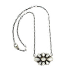 Mother of pearl, also known as nacre, is the iridescent inner layer of certain mollusk shells, such as oysters and abalones. It is composed primarily of aragonite (a form of calcium carbonate) and conchiolin (a protein), giving it a smooth, lustrous appearance. The unique play of colors, ranging from white to various shades of pink, blue, and green, is due to the way light interacts with the layered structure. Native American culture views mother of pearl as a symbol of beauty, protection, and tranquility, which adds deeper meaning to the jewelry.