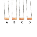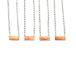 The length listed for bar necklaces is measured from clasp to hook, including the width of the bar. This total length does not directly reflect how the necklace will sit when worn. To more accurately determine where the necklace will sit, subtract the 'bar width' measurement from the 'length end to end" measurement.