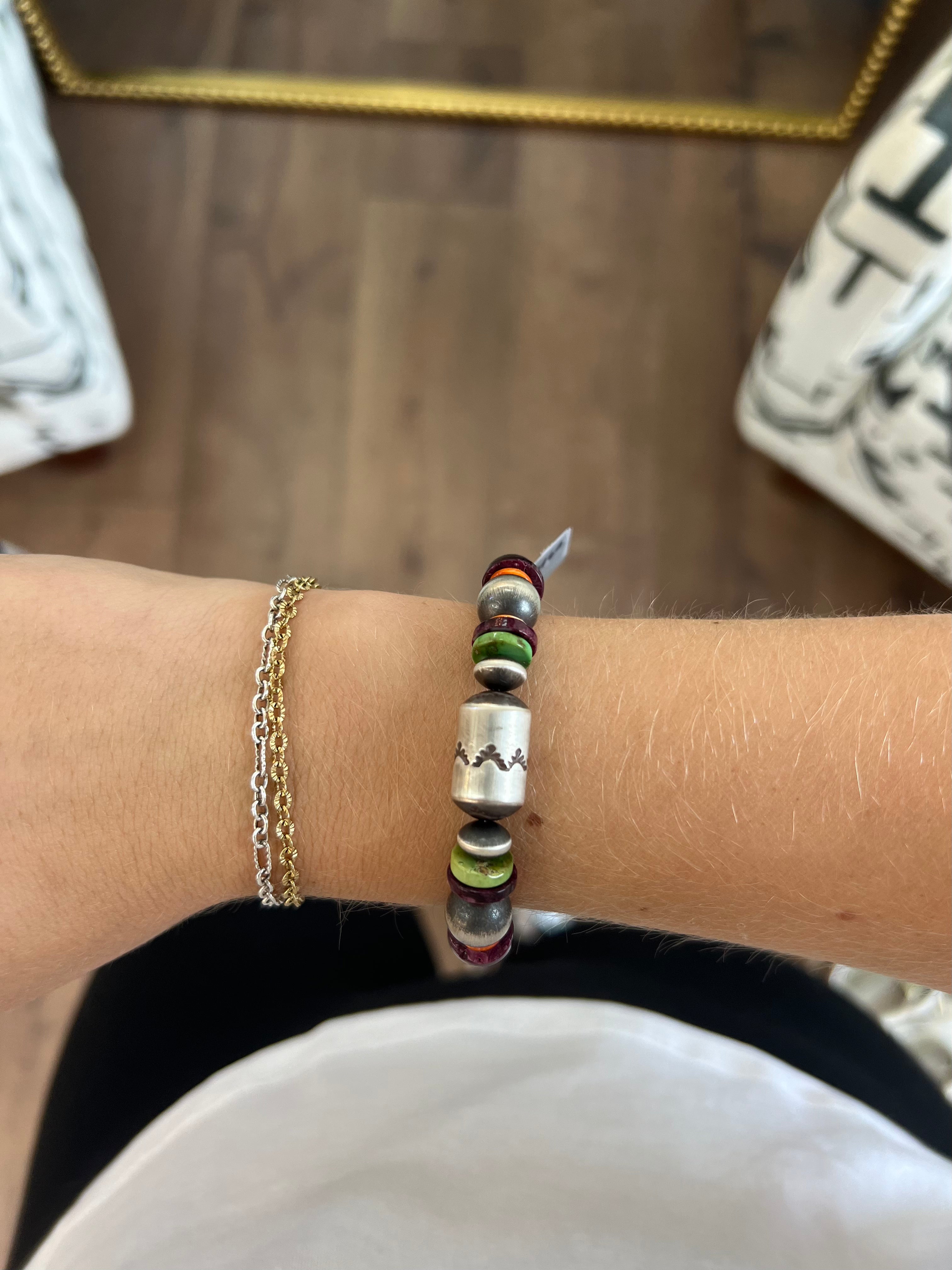 Rose is a Navajo artist from Pinedale, New Mexico, where she spent most of her childhood. She learned the art of bead making from her aunt Nellie, one of the original Navajo handmade bead artists. Crafting runs deep in her family, as everyone, including two of Rose's children, has been involved in making beads and working with silver jewelry.