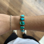 Loretta has a special fondness for turquoise, as it reminds her of her grandmother. Her jewelry style combines traditional techniques with a contemporary twist. She explains that her cluster-style pieces symbolize family, with the center representing the grandparents and the surrounding stones representing their children and grandchildren.