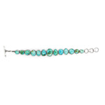 Sonoran turquoise, mined from the Campitos Mountain near Cananea, Sonora, Mexico. This region produces several distinctive types, including Sonoran Gold, known for its vibrant colors like aqua blue, lime, and two-tone blue and green with a golden-brown matrix; Sonoran Rose, a natural bright blue turquoise; and Sonoran Blue, valued for its hardness, shiny pyrite flakes, and black oxide veins.