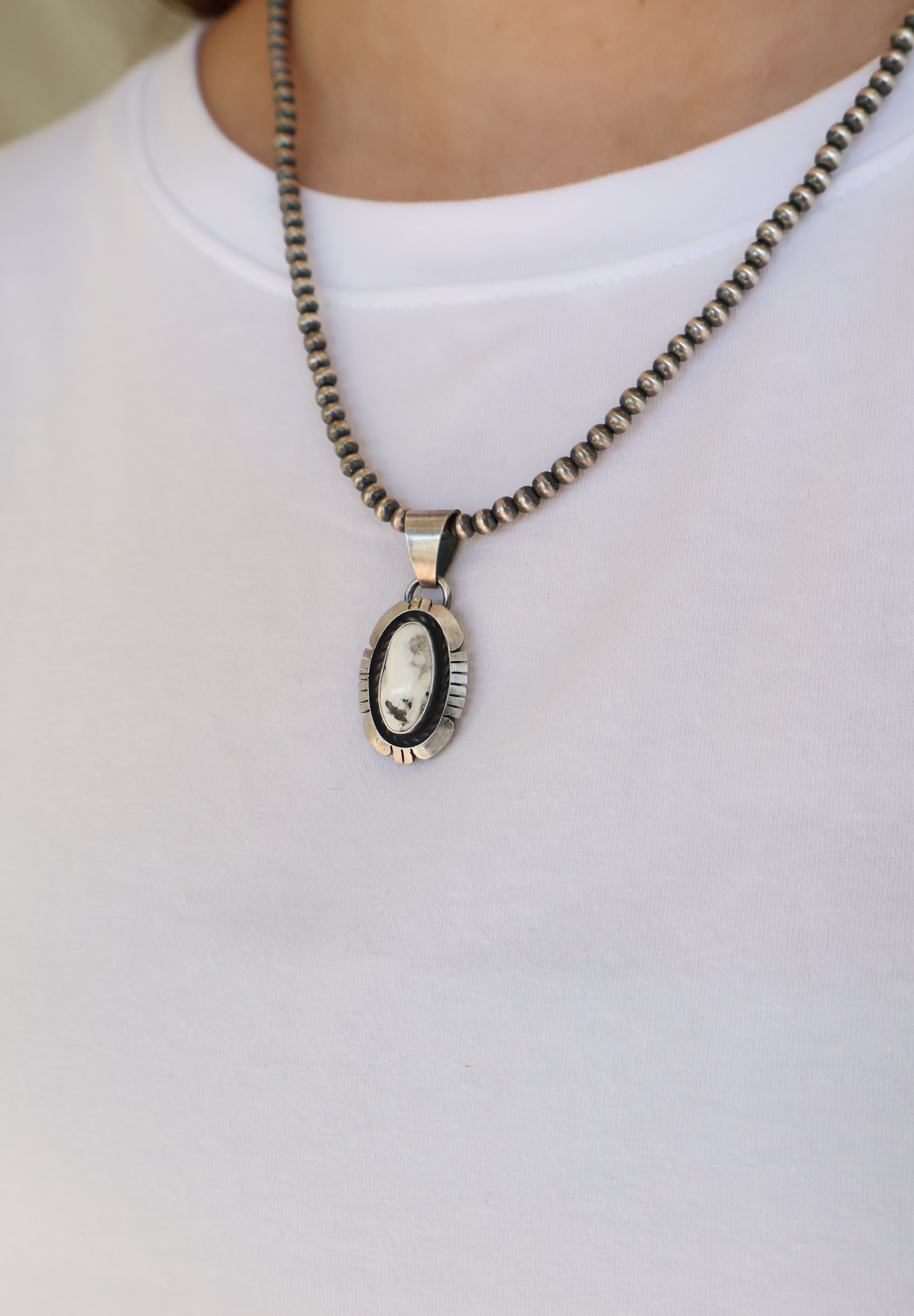 White Buffalo is in fact NOT turquoise. Although White Buffalo is often sold as turquoise, it's classification is actually magnesite and alumite. Its unique coloring comes from the presence of Calcite mineral. The only mine known to be home to White Buffalo is The Dry Creek Mine in Tonopah, NV. It was first discovered by the Otteson family in 1993. The name derives from the Native American belief that white buffaloes are pure and rare like the white buffalo stone. The white stone is surrounded by black and brown flint-like chert which creates beautiful patterns, and sometimes in rare pieces, a spider-web matrix. The stone appears in veins, is as hard as turquoise (Mohs hardness scale of 5.5 to 7.5) and cuts and polishes like turquoise.