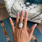 White Buffalo is in fact NOT turquoise. Although White Buffalo is often sold as turquoise, it's classification is actually magnesite and alumite. Its unique coloring comes from the presence of Calcite mineral. The only mine known to be home to White Buffalo is The Dry Creek Mine in Tonopah, NV. It was first discovered by the Otteson family in 1993. The name derives from the Native American belief that white buffaloes are pure and rare like the white buffalo stone. The white stone is surrounded by black and brown flint-like chert which creates beautiful patterns, and sometimes in rare pieces, a spider-web matrix. The stone appears in veins, is as hard as turquoise (Mohs hardness scale of 5.5 to 7.5) and cuts and polishes like turquoise.