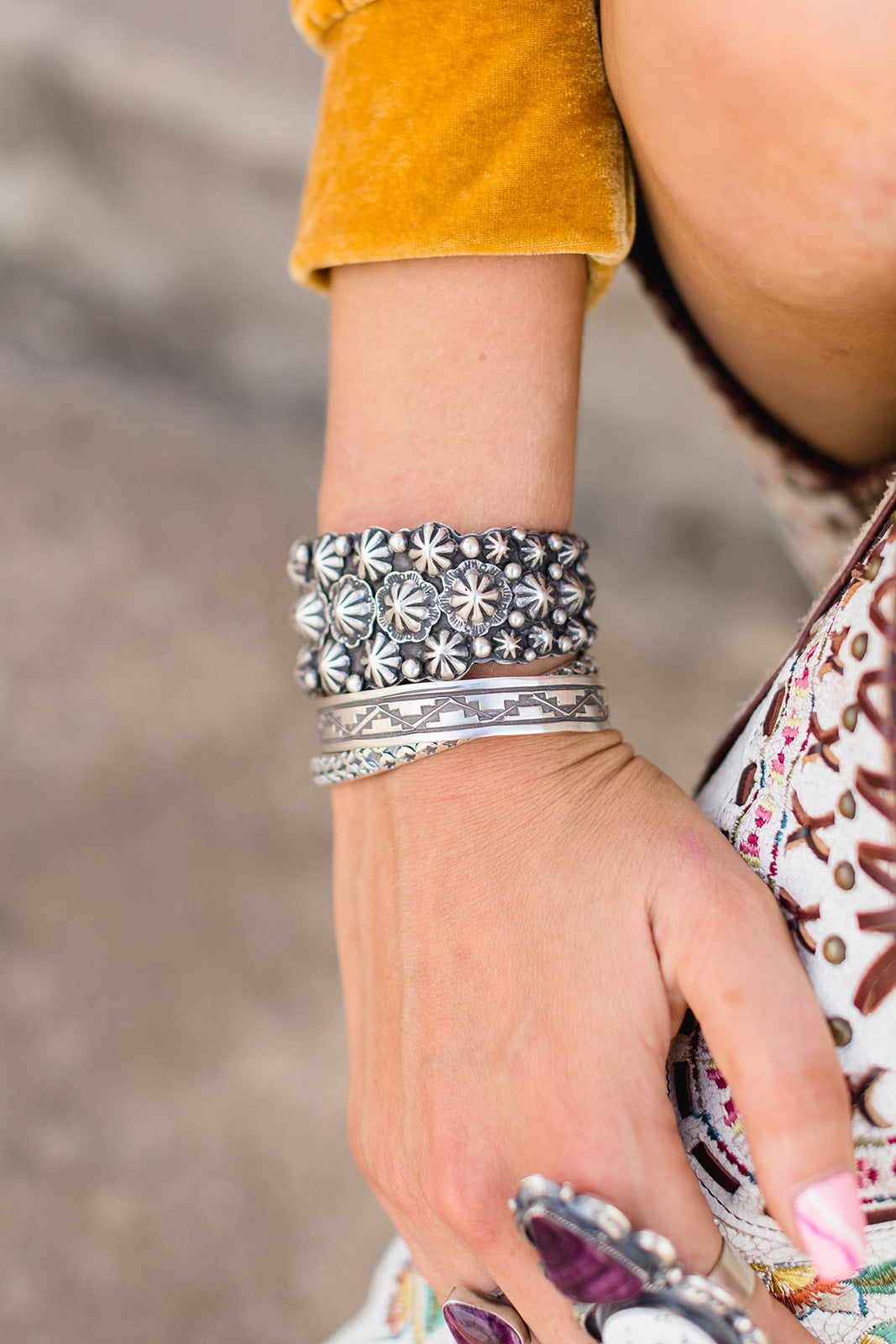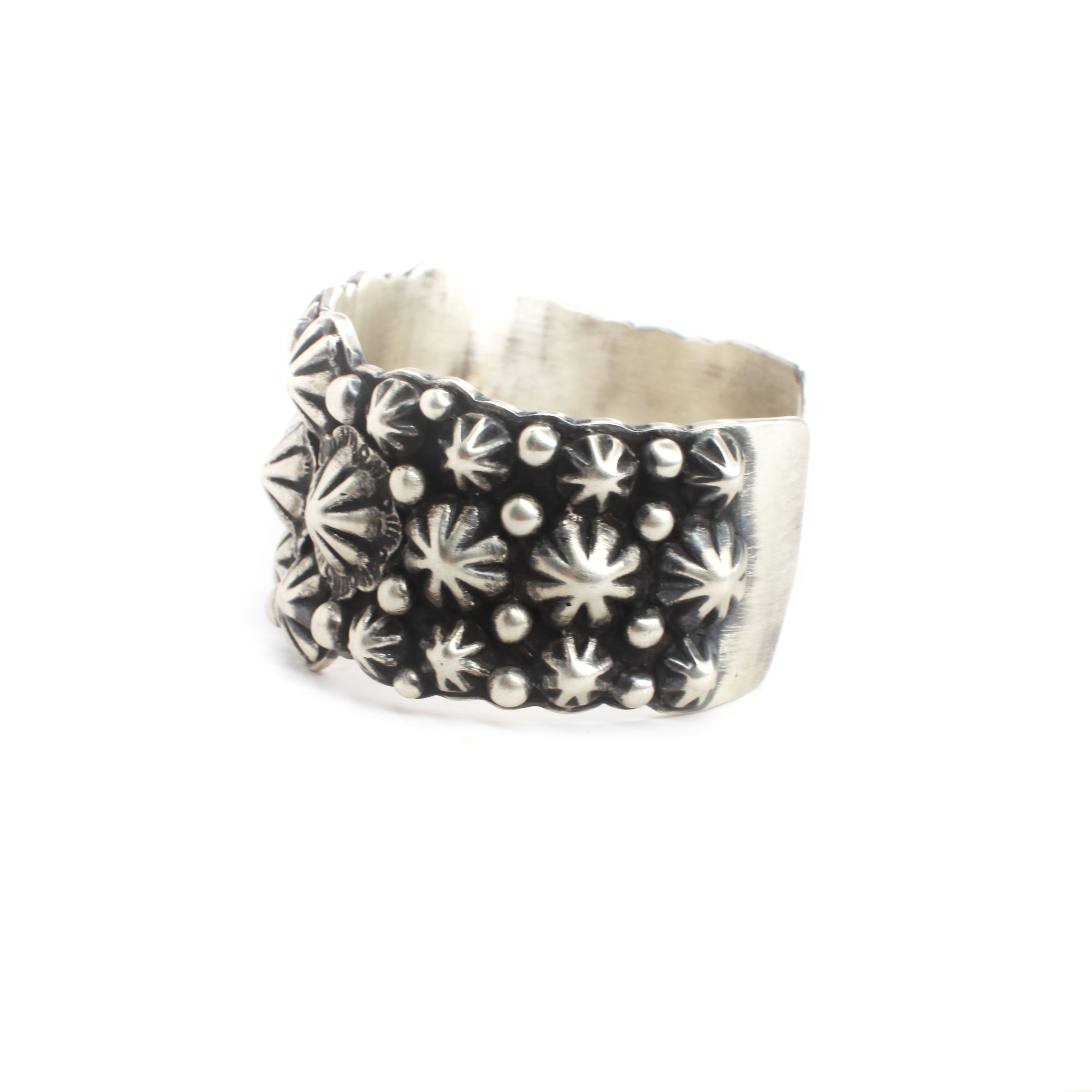 Raymond is a renowned artist from Santo Domingo Pueblo who embarked on his silversmithing journey under the mentorship of his father. He refined his skills further at the Institute of American Indian Arts. After graduating, Raymond worked at Sunbell Trading Company until its closure. His exceptional craftsmanship has garnered him first-place awards at both the State Fair and the Gallup Arts and Crafts Show. Additionally, he created a traveling gavel that has toured various locations throughout New Mexico and is now proudly displayed at a lodge in Albuquerque.