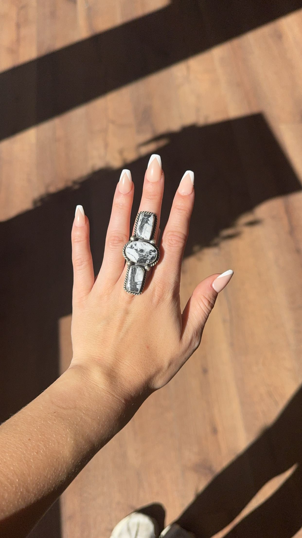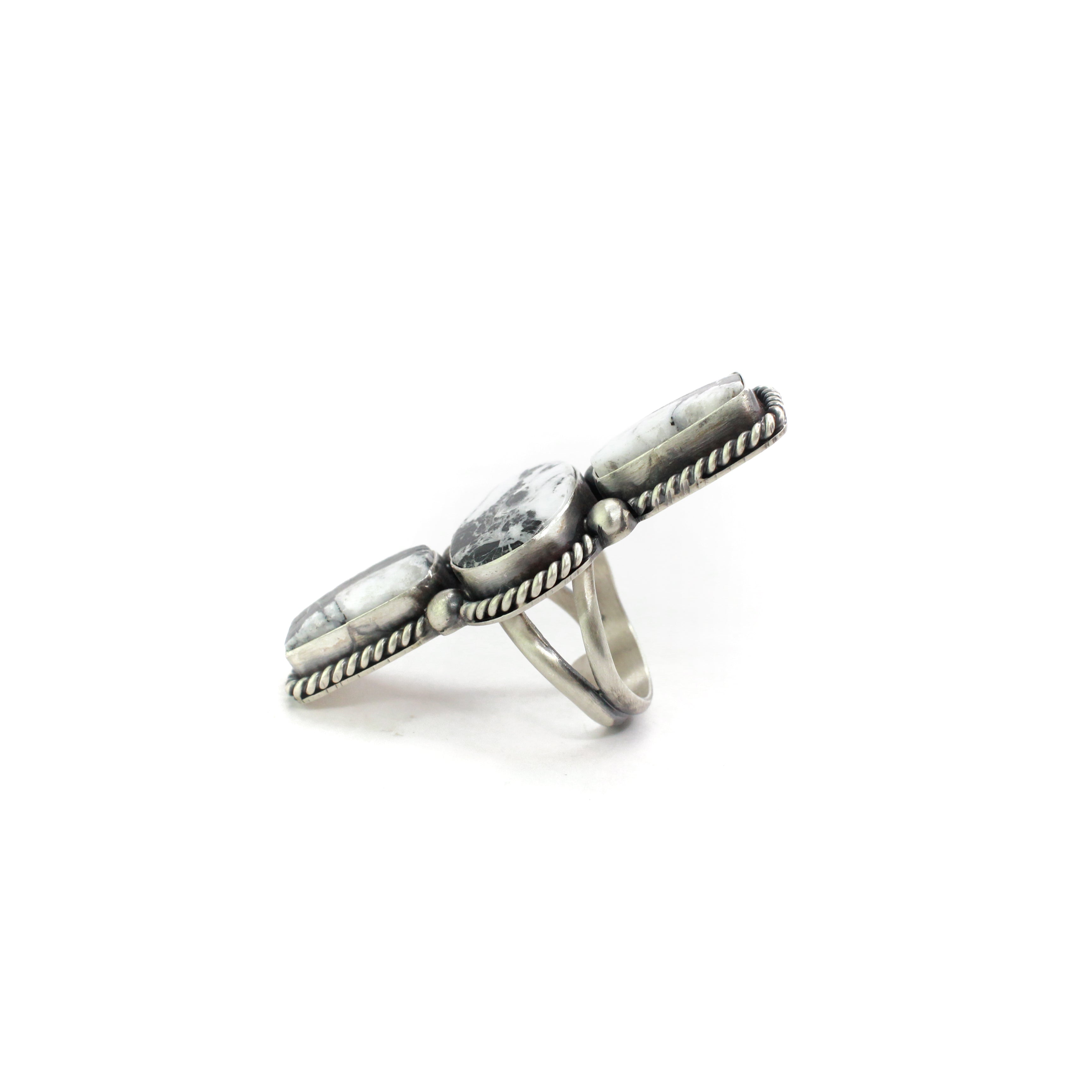 White Buffalo is in fact NOT turquoise. Although White Buffalo is often sold as turquoise, it's classification is actually magnesite and alumite. Its unique coloring comes from the presence of Calcite mineral. The only mine known to be home to White Buffalo is The Dry Creek Mine in Tonopah, NV. It was first discovered by the Otteson family in 1993. The name derives from the Native American belief that white buffaloes are pure and rare like the white buffalo stone. The white stone is surrounded by black and brown flint-like chert which creates beautiful patterns, and sometimes in rare pieces, a spider-web matrix. The stone appears in veins, is as hard as turquoise (Mohs hardness scale of 5.5 to 7.5) and cuts and polishes like turquoise.
