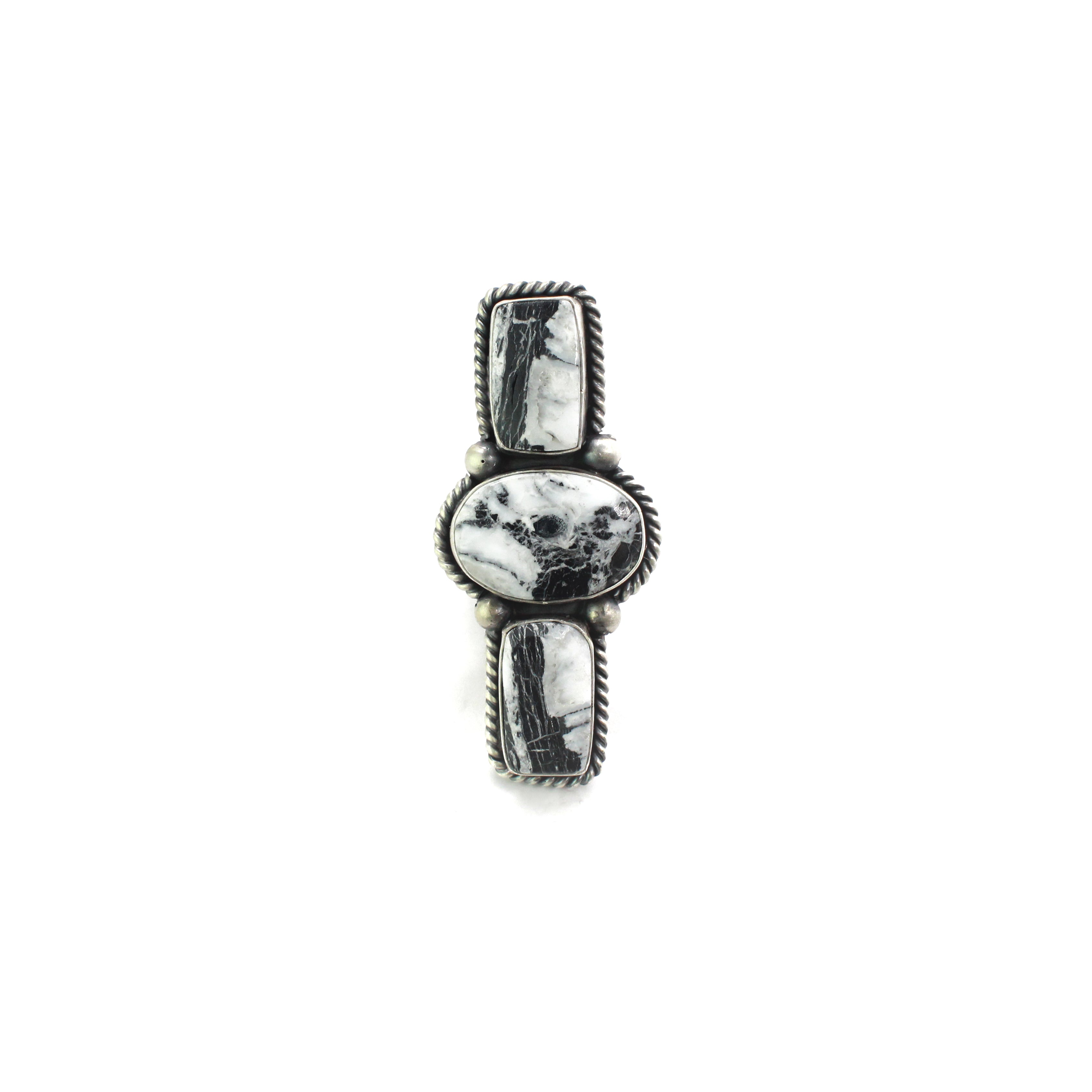 Throughout his nearly forty-year career, Paul has continually pushed the boundaries of traditional Navajo jewelry, experimenting with new techniques, textures, and finishes to enhance the beauty of his pieces. While his work is rooted in traditional and vintage-inspired Navajo styles, his contemporary designs are equally popular. His intricate saw work demonstrates the technical expertise and artistic vision that have come to define his jewelry. Paul Livingston's creations honor his heritage while standing out for their beauty and craftsmanship, making them highly prized among collectors and art enthusiasts alike.