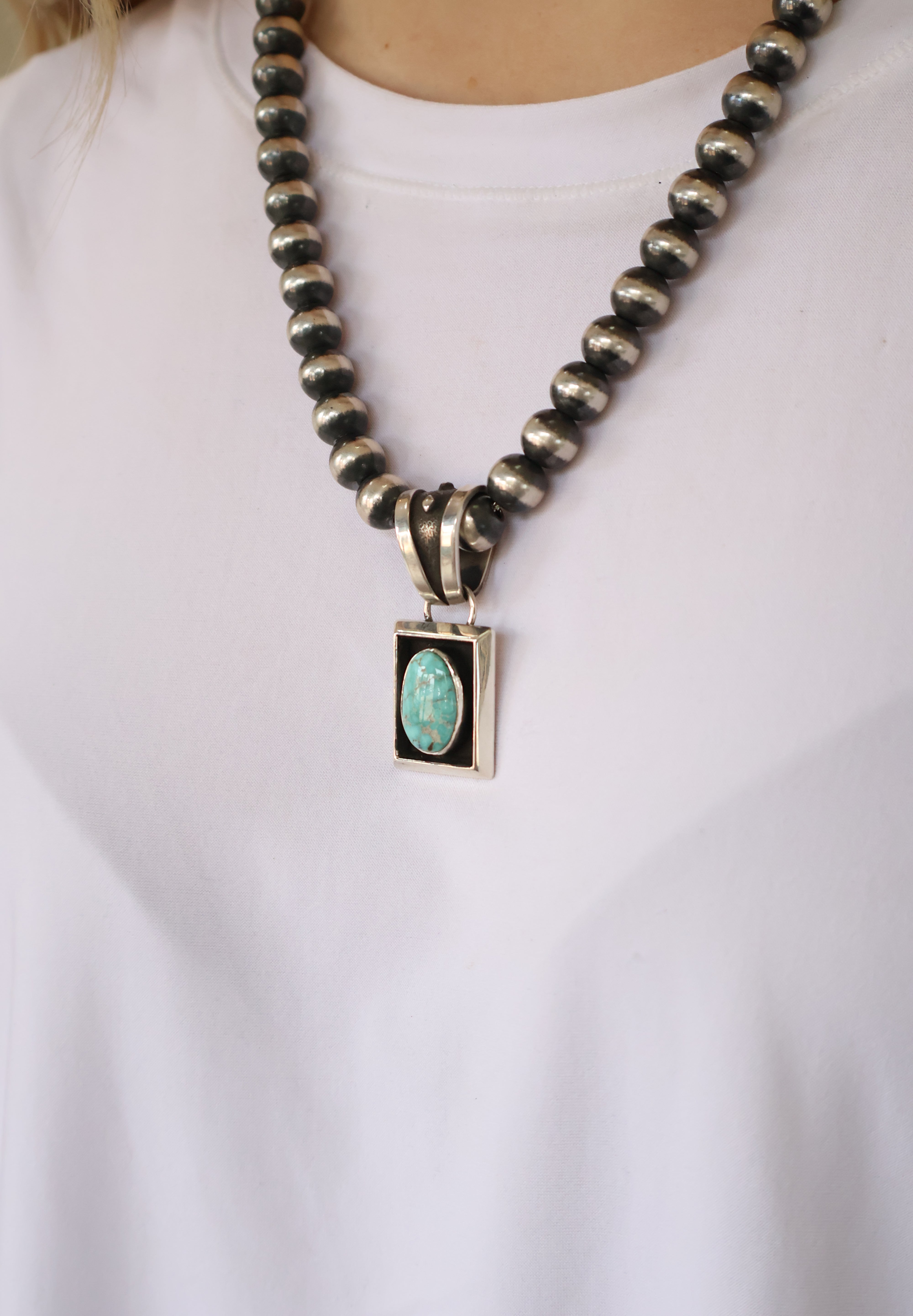 Pictured on 10mm, 20" Navajo Pearls Not Included